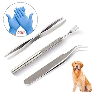 Locisne Set of 3 Stainless Steel Tick Tweezers Kit Pet Dogs Cats Remover Tool Set for Removing Ticks, Glass Chips, Wood…