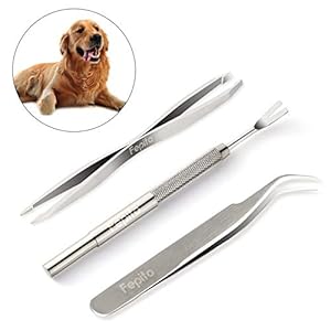FEPITO 3 Pcs Stainless Steel Tick Remover Tool Set Pet Dogs Cats Ticks Remover Kit Including 1 Pcs Tick Removal Tweezers…