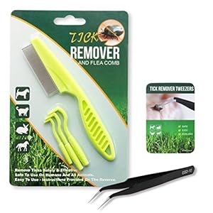 BINGPET Tick Remover Tool Set for Dogs, Cats and Humans – 3 Pack of Tick Removers, 1 Pack of Flea Comb and 1 Pack of…